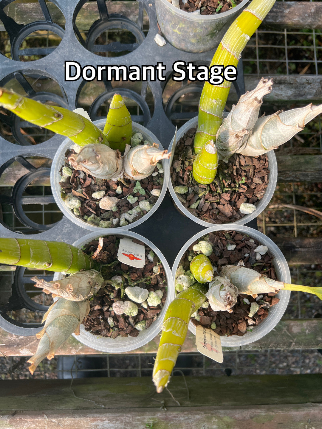 Potting mix: Coarse orchid bark or well-draining bark mix. Repot in Spring once root bound. Do not allow bark to become waterlogged.