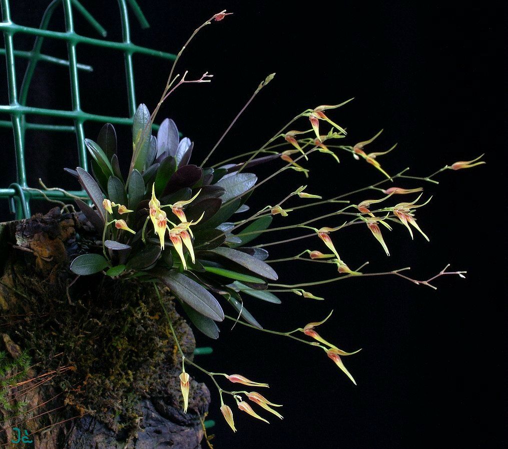 Pleurothallis picta (Specklinia picta), is a very compact orchid native to Central and South America. A cool-warm grower that is forgiving as long as it doesn't experience excess drought. Will produce bursts of tiny yellow-orange blooms. When its not blooming it can be enjoyed for its purplish foliage. Prefers medium-high humidity and will thrive in low-medium light. A good candidate for vivariums and terrariums.